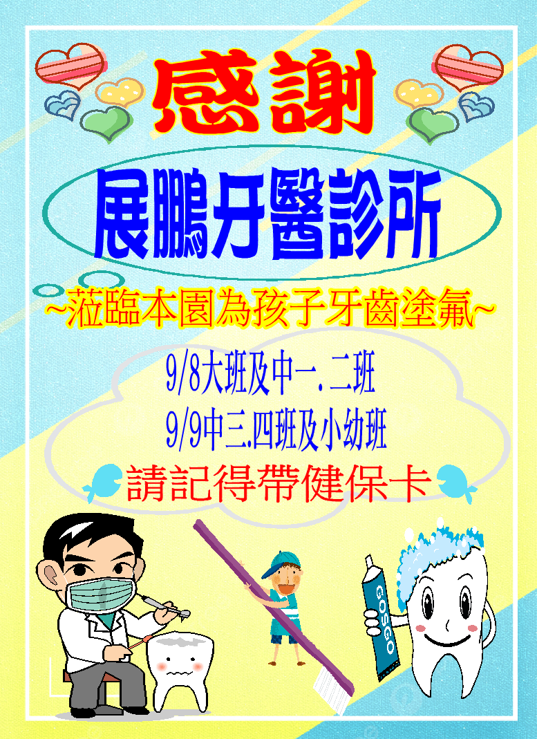 特別感謝「展鵬牙醫診所」團隊到園幫孩子檢查牙齒與塗氟 ~