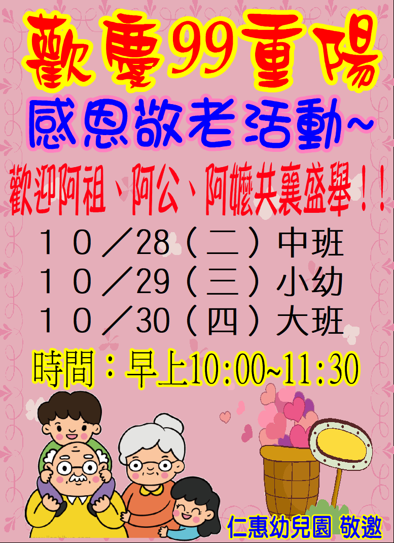 仁惠幼兒園「歡慶99重陽-感恩敬老活動」邀請親愛的阿公